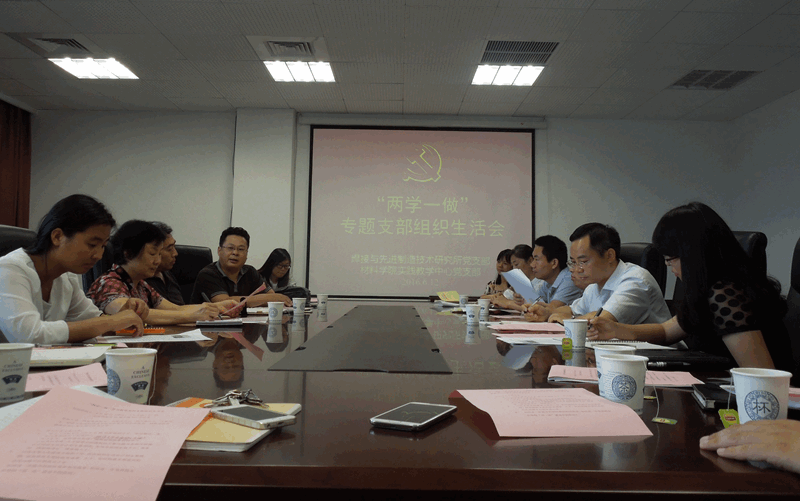 焊接所党支部书记叶福兴主持会议。支部党员首先集中学习了“习近平总书记4月26日在知识分子、劳动模范、青年代表座谈会上的讲话”。然后就如何争取国家级平台、国家奖、国家级项目、国家级人才;如何开展支部文化建设和构建支部党员的合作沟通平台以及党员之家;如何进一步提升科研经费的使用效率;如何进一步发挥校友在母校“双一流”建设中的作用等问题展开讨论。