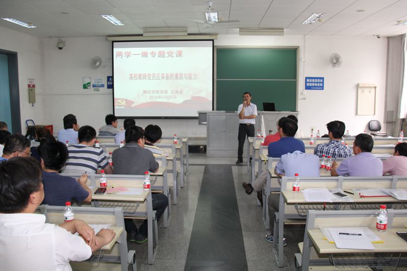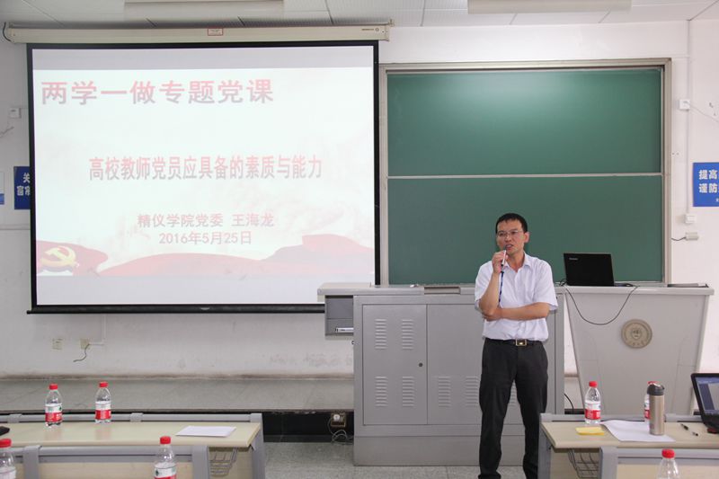 本站讯 (通讯员 梁童心)5月25日,天津大学精仪学院在24楼203教室举行全院教职工大会,150余名教职工参加此次会议。精仪学院党委书记王海龙作了题为《高校教师党员应具备的素质与能力》的“两学一做”专题党课。
