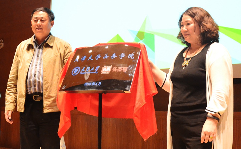 启动仪式上,校党委副书记李义丹、今日头条运营高级总监陈诗莹共同为天津大学头条学院揭牌。该学院将成为面向校内广大学生开放的新媒体运营培训平台,并与课外教育实践相结合,促进我校新媒体人才的培养。