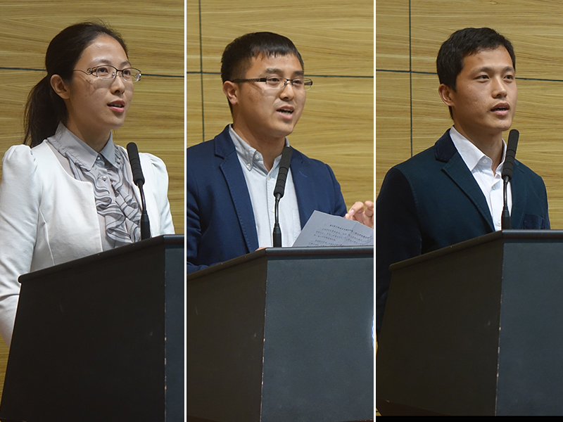 青年教职工代表刘艳丽、程超超、郑学荣在大会上发言