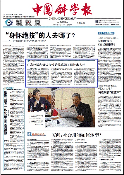 为此,今年两会,李家俊代表中国卓越大学联盟(以工科为特色的北京理工大学、东南大学、哈尔滨工业大学等9所国家“985工程”大学,也称“E9”)的9位校长,提出了《加快培养高端工程技术人才 支撑中国制造2025》的议案。