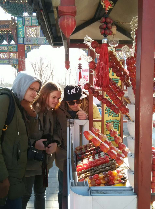 本站讯 (通讯员 冯宝平)今年寒假,我校有近200名因各种原因不能回家的留学生在校过年,为了使他们感受中国传统节日春节的气氛,学校安排了系列民俗体验活动。2月1日(农历腊月二十三)是中国小年,我校组织留学生来到千年古镇杨柳青,参加“第十三届杨柳青民俗文化旅游节”活动,逛千年古镇、看天津曲艺、买民俗年货,过津味大年,让留学生感受浓浓的年味,在天津欢度中国年。