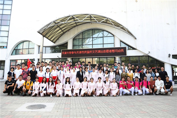 本站讯 9月27日上午,天津大学党委副书记雷鸣在卫津路校区大学生活动中心,亲切慰问了天津大学参与天津市国庆庆祝大会文艺演出的志愿者们。来自精仪学院、自动化学院、建筑学院、经管学部、药学院、法学院和微电子学院共计150余名学生志愿者参与到国庆文艺演出工作中来。