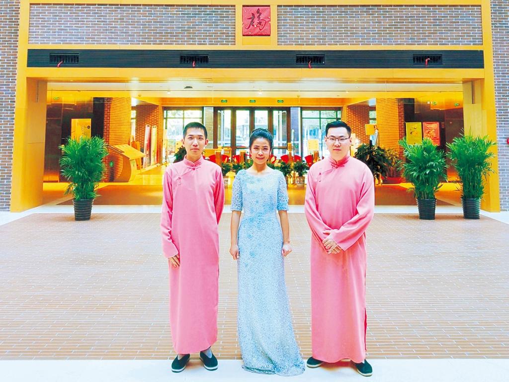 快板节目演员张帅(左)张艳秋(中)王益忱