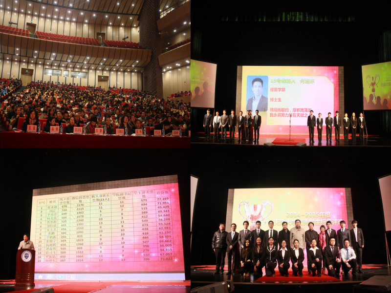 在终评会现场,15名候选人各显其能,在5分钟的展示时间中充分展示了自己在学习、科研、社会实践、社团工作、志愿服务、文艺体育等多方面取得的傲人成绩。他们中有学习成绩一直名列专业第一的GPA大神,有科研成果达到多位博士生毕业要求的科研牛人,有后来居上逆袭成功的励志姐,有传播快乐、平凡之中见伟大的心理委员,有全情投入、经验丰富的社团达人,也有勇敢追梦、琴棋书画样样通的奇女子。他们勤奋刻苦的学习态度,勇攀高峰的执着精神,精益求精的人生信条和硕果累累的各项成绩博得了全场人员的阵阵掌声。