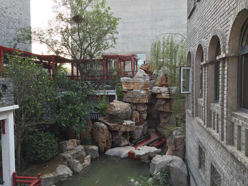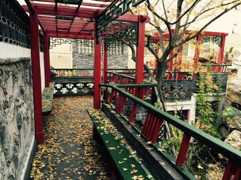 此外,“一亩园”在交通系统、电力系统、水系统、管养系统中,也应用了低炭、节能、环保的多项技术。如,景观用水是循环用水,节省用水量;全园采用自动喷溉系统,节省劳动力;四合院加坡璃顶葡萄架组合,也是节能环保的低成本技术;全园植物肥料制作用生活垃圾和园林垃圾沤制有机肥技术等。