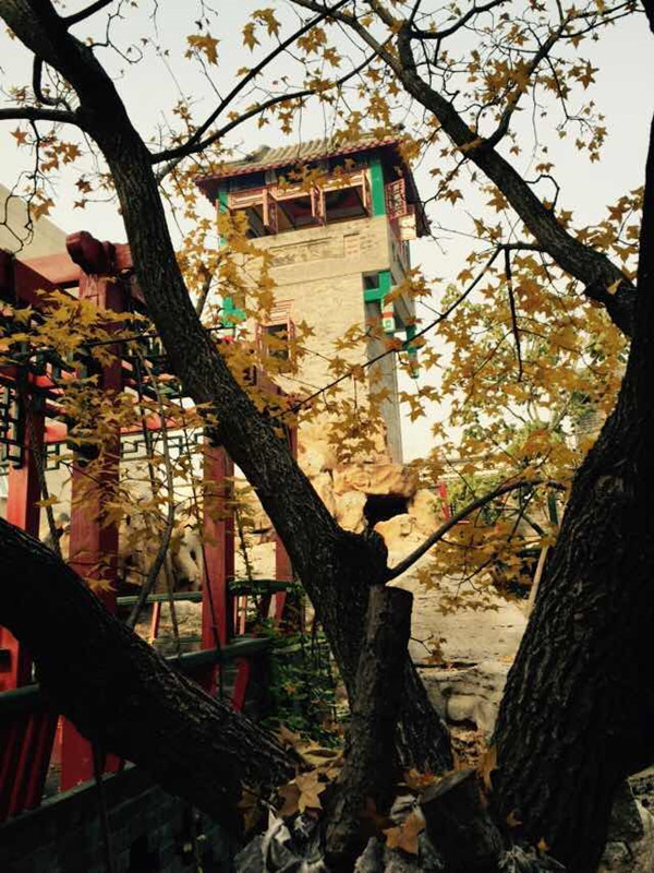 拓展视野 是“一亩园”的另一特色。一亩虽小,但是,造园手法可把游客视线引向园外,如问天阁借景宋庄四周景观;木栈道借景围墙外的人来车往;四个露台有的借景东侧邻居院景,有的借景西侧道路,有的借景天上明月浮云。