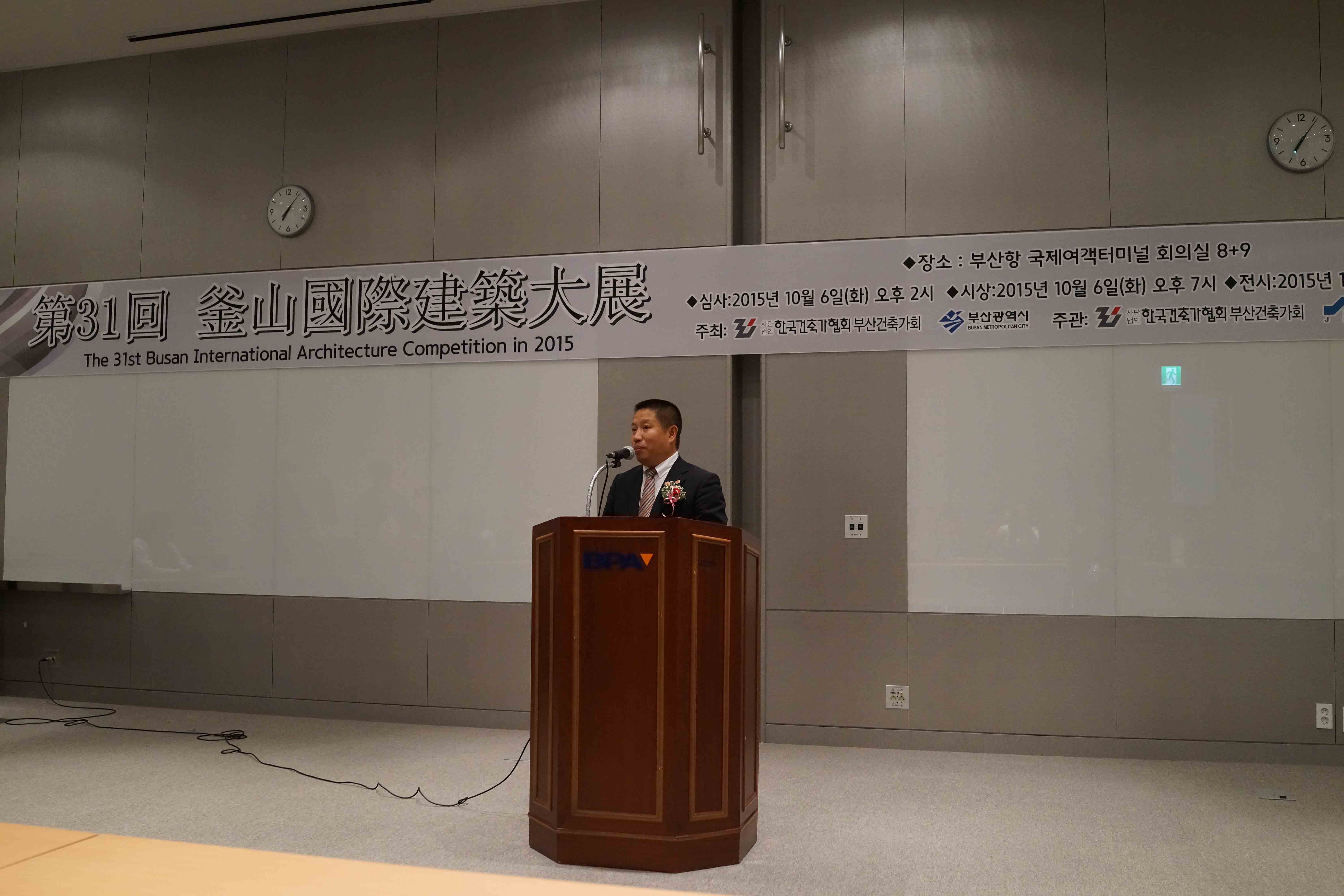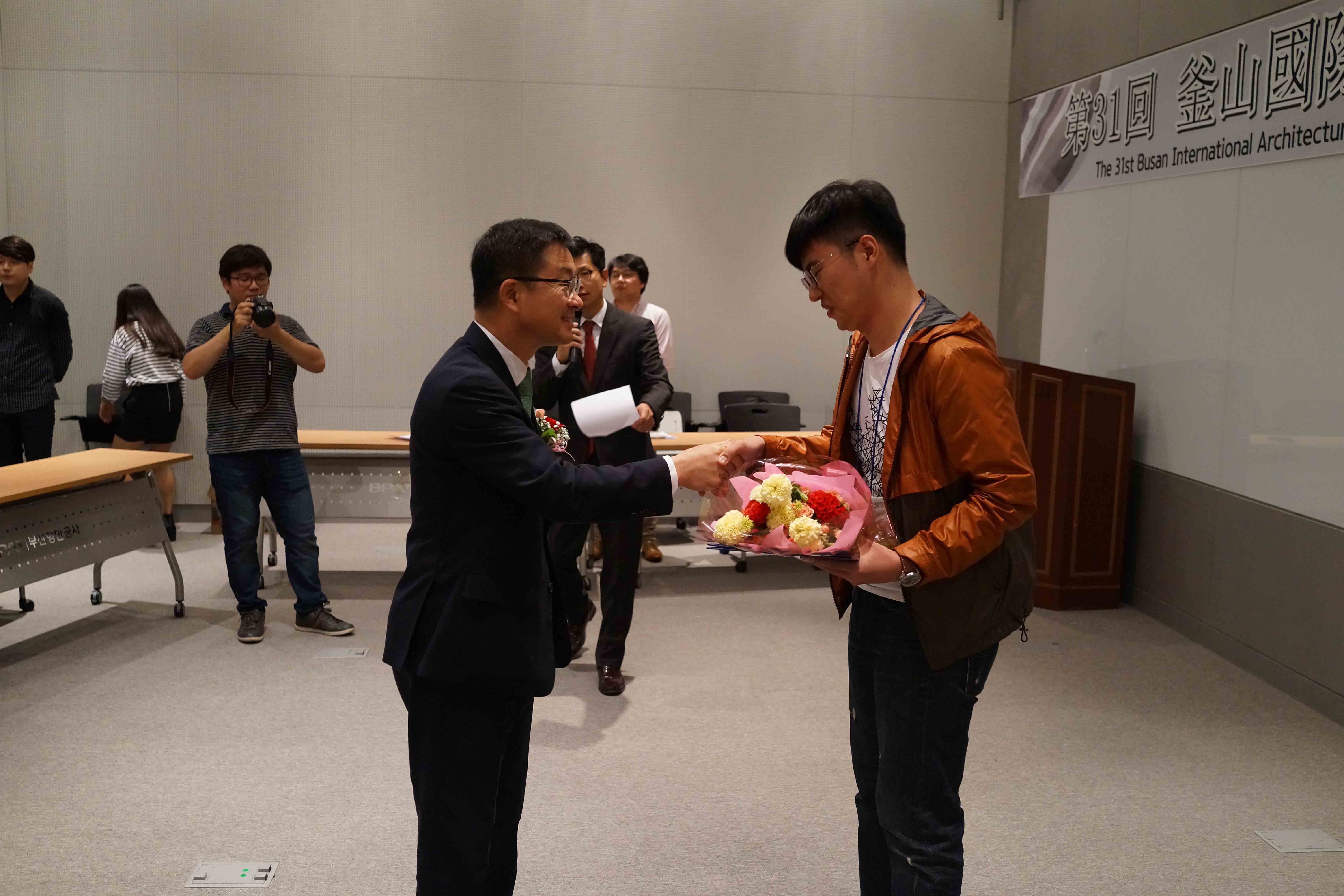 本站讯(通讯员 郑冬园)10月5日至8日,天津市建筑学会副会长、天大设计总院院长洪再生受韩国釜山市市长邀请,率队出席了2015年釜山国际建筑文化节活动。总院副院长袁大昌、国际合作与学科发展部部长张璐、郑冬园陪同前往。洪再生还受邀担任了第31届釜山国际建筑设计竞赛终审评委。天津大学建筑学院吕晨阳、常靖入围竞赛最终评审,天大设计总院设计一院倪旭玮受邀参加了颁奖仪式。