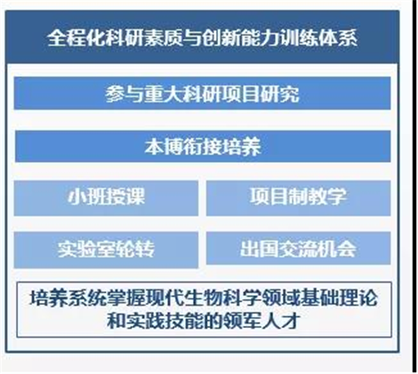 聚焦国家重大战略需求和生命科学领域前沿,培养系统掌握现代生物学基础理论和实践技能的领军人才。建立结合重大科研任务的人才培养机制,为学生“一对一”配备导师,开放国家级、省部级科研平台,吸纳学生参与项目研究。