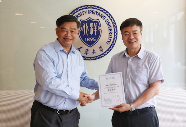 本站讯(记者 赵习钧 摄影 唐蒙)2019年9月9日,在第35个教师节来临之际,天津大学校长金东寒在卫津路校区贵宾室会见了海洋石油工程股份有限公司原董事长、党委书记、总裁金晓剑一行,并为金晓剑颁发兼职教授聘书,正式聘任金晓剑为天津大学管理与经济学部兼职教授。