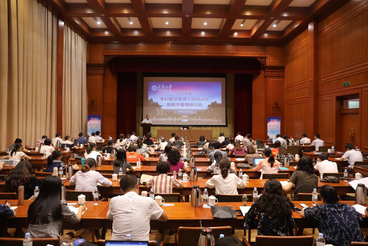 (本站讯 通讯员 郭帅 成雷鸣 摄影 成雷鸣 张寿行 方明 张梦龙)为深入学习新时代全国高等学校本科教育工作会议精神,统筹推进“一流本科教育2030行动计划”,全面提高学校人才培养能力和质量,8月23-24日,教务处举办2018年本科教学管理人员培训会暨教学管理研讨会。各学院教学副院长、教务员,部分教师代表,教务处全体人员,共计近百人参加会议。教务处处长巩金龙主持会议。