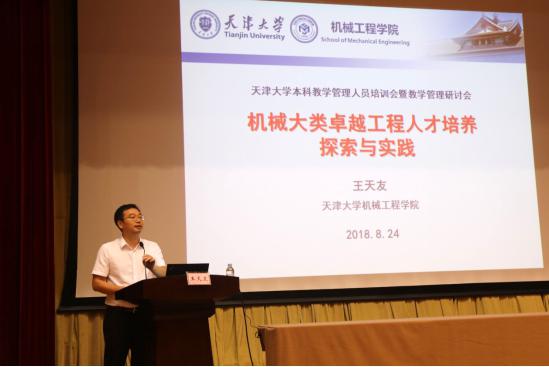 机械工程学院院长王天友作了《机械大类卓越工程人才培养探索与实践》的特邀报告,分享了学院在卓越工程人才培养、新工科建设等方面的工作经验,特别提到了新时代下对于本科教育的思考。机械工程学院在建设理念、专业融合、科研支撑、制度保障、创新培养等方面积极探索与实践,卓越工程人才培养取得了长足的进步,积累了宝贵的经验。在新时代的大形势下,面临新机遇和挑新战,将紧抓新工科建设的契机,构建新的育人体系和实践平台。他提到,高等教育面临新的历史特点,学生思想状态与时俱进,我们的教育理念、管理方式、培养模式、教学内容等需要随之转变。本科教育任重道远,需要共同努力。