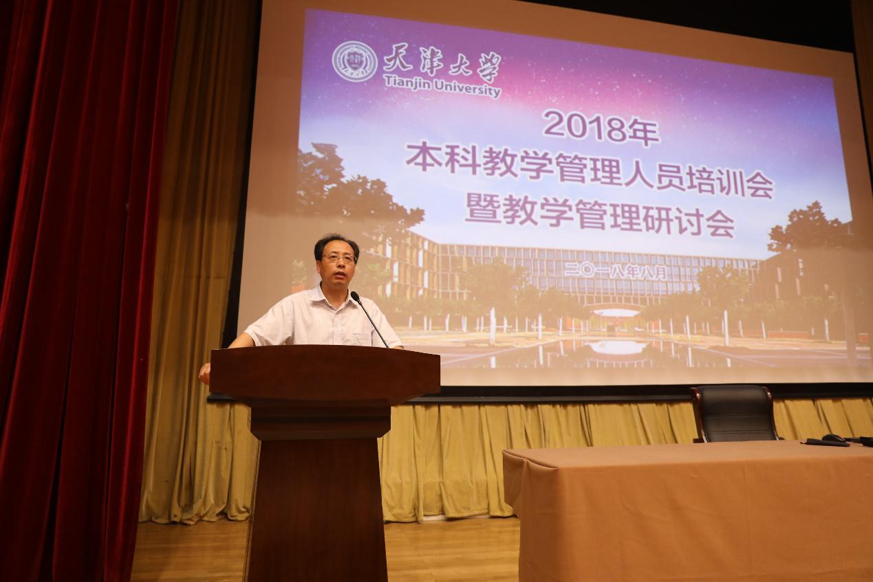 副校长王树新为培训会做开班致辞。他指出新时代全国高等学校本科教育工作会议要求高校要“以本为本”,本科教学管理工作队伍对落实高等教育内涵式发展和学校的各项重点工作有着重要作用。他对全体本科教学管理工作者提出了三点要求:一是工作中要有热情的态度,让师生感受到温度,特别是要以热情的工作态度迎接10月份的本科教学审核评估;二是要有敬业的态度,要高标准、严要求,在教学管理工作中体现职业化;三是要有一流的态度,用一流的管理工作水平,建设一流的大学。