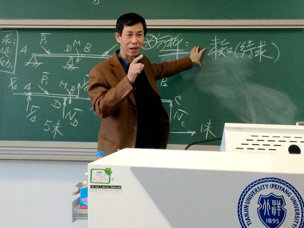 讲授“桁架结构”那堂课上,曹树谦的课首语是“海河与桁架”,他以海河“桥梁众多、结构各具特色”破题,引入了人民解放军会师金汤桥解放天津的历史,告诉学生要缅怀先烈,珍惜幸福生活。当课堂上偶有学生走神,曹树谦会随口一句“闲言碎语”敲打起来:“求知路上,一个都不能少!”然后他会和学生阐释习近平总书记曾说过“小康路上一个都不能少”,那是党和国家对打赢脱贫攻坚战、让人民群众过上美好生活的庄严承诺,引发学生对党和国家大政方针的了解与思考。当一堂课接近尾声,知识按计划传授完成,曹树谦会放下手中的激光笔,开始简短的“小补充”。他喜欢在这个时候放慢语速,和学生们讲讲过去的事儿,讲天大校史,讲“西北联大”,讲他自己的老师——陈予恕院士等前辈大家艰难缔造,开创中国工程非线性振动学科的故事,勉励学生不忘北洋天大精神财富,继承那份严谨治学、爱国奉献的家国情怀。