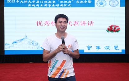 今年天津大学共有24名应届毕业生到厦门就业或深造学习。2017级博士王华昆(厦门大学建筑与土木工程学院助理教授)代表应届生发言,分享了从校园生活到步入社会的历程,并对新同学们进行了鼓励。