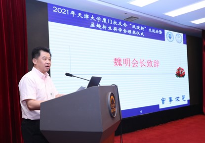 魏明代表厦门校友会会长联席会致辞,寄语新同学们要有天大的胸怀、天大的动力、天大的理想,珍惜校园时光,不断超越自我。他希望新校友们用双手在这儿拼搏出成功的事业和幸福的家庭,欢迎大家加入校友会,共同建设更加温馨和谐的鹭岛北洋人之家。