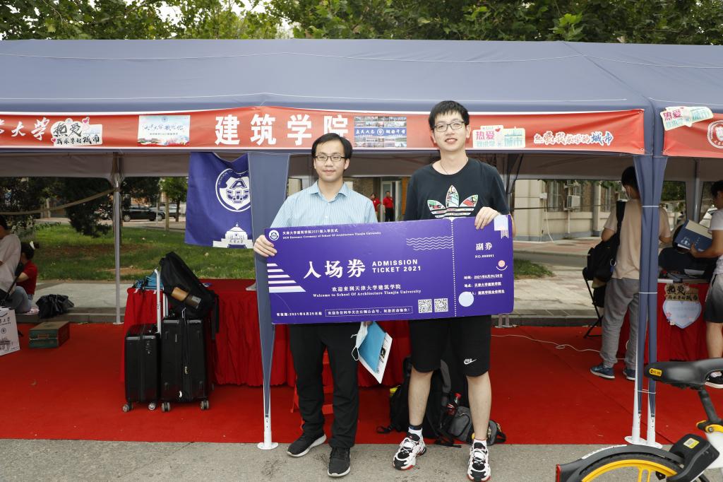 为了让每一位新生都能够拥有独一无二的、难忘的天大初体验,天津大学各学部学院都在自己的迎新点位精心准备了独具特色的迎新活动和礼物。建工学院迎新点附近,一张巨大的中国地图引起了不少新生的注意。新生可以报到处领取一枚校徽,将其放置在地图上的家乡处。而地图上“移山填海,建功立业”这句大气磅礴的口号也是格外亮眼。 “这句口号既是我们建工人的追求,也是建工学院的精神。希望能唤起新生对祖国对‘求学城市第二故乡’的热爱之情。” 建工学院2021级硕博辅导员孟子健介绍道。数学学院的迎新站点则请出了可爱的学院吉祥物——小π助力迎新。“π是数学的终极魅力。看到小π就好像看到了天大数院无穷的创造力。” 2021级研究生新生刘凯在报到的时候情不自禁地抚摸着小π的头笑着说道。地球系统科学学院迎新点前长长的立牌上便简明扼要介绍了天津大学的历史,地科院的学生培养方向目标、国际交流项目、科学研究成果等。迎新点内厚厚的迎新礼包里为新生们准备了实验室安全手册、研究生的入学须知、设计精美的院徽等帮助新生们对于即将到来的大学生活进行全面的了解。针对今年的迎新,分子+研究院特别推出“以老带新”新老生结对子的暖心举措,为每个新生结对一名高年级党员同学,从入学开始,包括行李搬运,宿舍引导、报到手续、生活品采购、校园熟悉、学业准备、经验传授、答疑解惑等方方面面,给予每位新生无微不至的关怀与呵护。新媒体与传播学院的迎新点前竖立着设计新颖、特色鲜明的拍照墙,新生们的脸上洋溢着入学的喜悦,纷纷前往拍照纪念。“虽然离开了家,但看到学院为我们精心准备的各种暖心礼物,我真真切切的感受到这里是我的第二故乡!”新媒体与传播学院2021级硕士生陈卉垚说到。