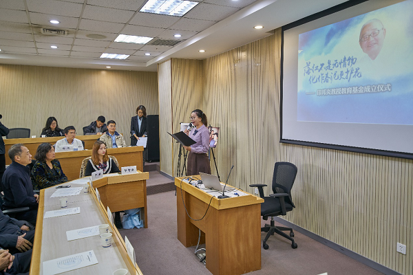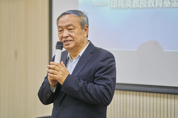 查京民先生在讲话中深情回忆过往,并介绍了成立该基金的初衷。他说父亲讲课风趣幽默,别具一格,善于因材施教,寓教于乐,据当年管理系的师生回忆,“印先生在校内外开展了很多场教学讲座,每次都是座无虚席。”他希望通过成立“印邦炎教授教育基金”回报社会,延续父亲的遗志。