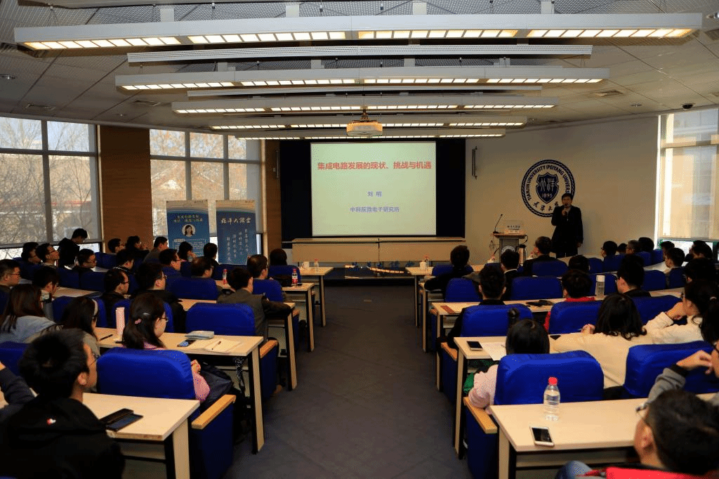 报告会上,刘明院士从集成电路发展现状、图形微缩挑战与应对策略、功耗/性能挑战与应对策略、未来发展方向和机遇四方面进行了专题报告。首先介绍了集成电路的发展历程以及重要的学术地位,全球和我国集成电路产业的发展,强调了集成电路的快速发展为世界近50年的信息化发展提供了核心支撑。讲述了集成电路图形持续微缩对材料、器件结构和光刻制造技术带来的挑战以及其应对策略。介绍了现代集成电路的未来发展方向、逻辑器件的技术路线和非易失存储器的发展趋势,总结出集成电路的进一步发展呈多元化趋势,并结合自身经历鼓励科研工作者们创新探索、潜心研究,投身国家自主创新建设,在器件和电路协同设计、智能EDA、同/异质集成、新原理器件、磁存储器等新领域开展深入研究。最后对报告内容进行小结,微电子科学与技术以其学科交叉度高、分工细化、前瞻科研转化快等特点已广泛应用到各个领域;后摩尔时代新器件及集成技术将对集成电路技术和格局产生颠覆性的影响,也是我国自主创新的良好机遇。希望同学们能够牢牢把握历史机遇、树立专业自信,为我国集成电路事业弯道超车做出贡献。