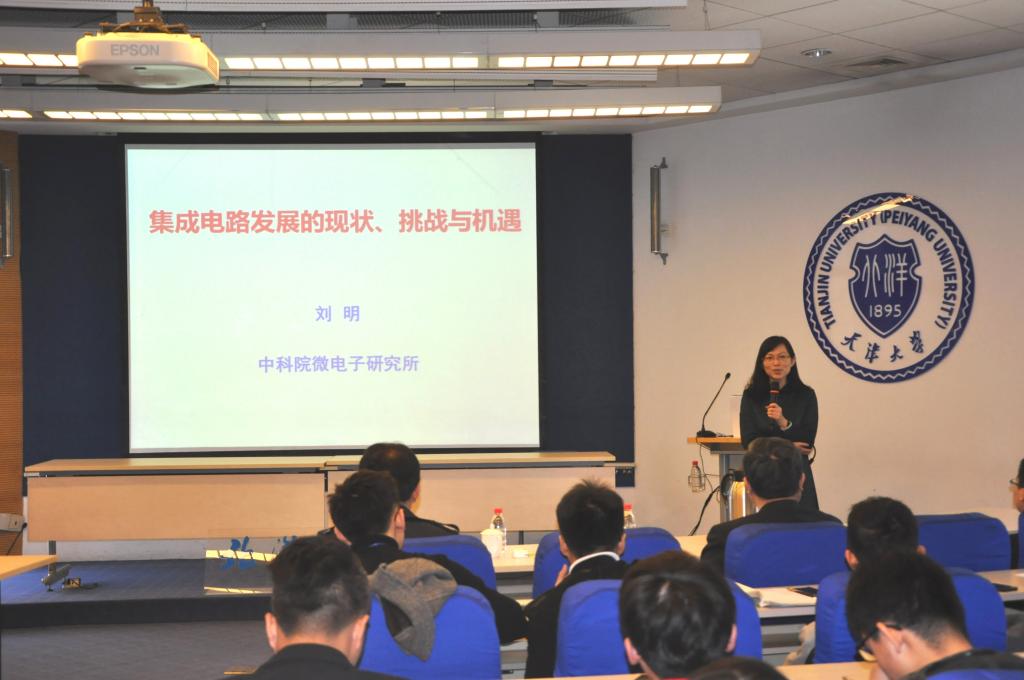 本站讯(通讯员 刘佳)11月24日上午,中国科学院院士刘明做客北洋大讲堂,在卫津路校区会议楼第八会议室做题为《集成电路发展的现状、挑战与机遇》的主题报告,微电子学院、精仪学院等相关学院百余名师生到场聆听报告,报告会由微电子学院院长马凯学主持。