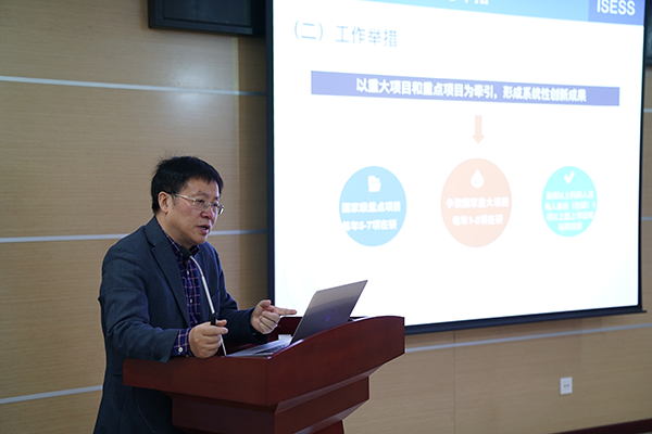 刘丛强院士做了《地科院科技工作报告》。他强调了本次地科院召开科技工作会议的重要意义和目的,分析了地科院的科研定位和发展愿景,总结了学院成立以来的科技工作发展情况和面临的问题,并指出未来发展目标和举措。他提出以“三大方向”、“五大优先研究领域”和“三项使命”为核心,遵循“凝练方向、前瞻布局、后发制人”的发展思路,以优化学术团队、统筹推进重大/重点项目和强化重大科研平台建设为举措,聚力源头创新,力争形成系统性创新成果,服务国家重大战略需求,逐步将地科院建成表层地球系统世界领先的教学科研机构。
