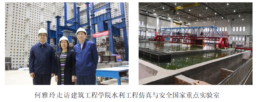 专家何雅玲在走访建筑工程学院水利工程仿真与安全国家重点实验室时由衷赞叹“建工学院的实验室很壮观、很震撼,国内少见”,“学院在授课过程中,不仅在传授知识,同时还包涵了家国情怀在其中,从基础研究到技术应用及与人才培养的结合都很好”。整个实验室走访历时近90分钟,何院士对国家重点实验室给予了高度的评价与肯定,对科研反哺教学情况进行了深入了解。