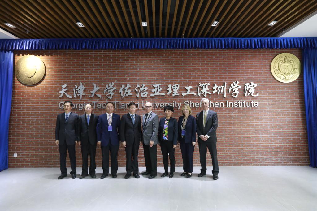 天津大学党委书记李家俊,副校长胡文平、王树新,佐治亚理工学院教务长Rafael Bras,副教务长Yevs Berthelot、Bonnie Ferri共同为过渡校区揭幕。