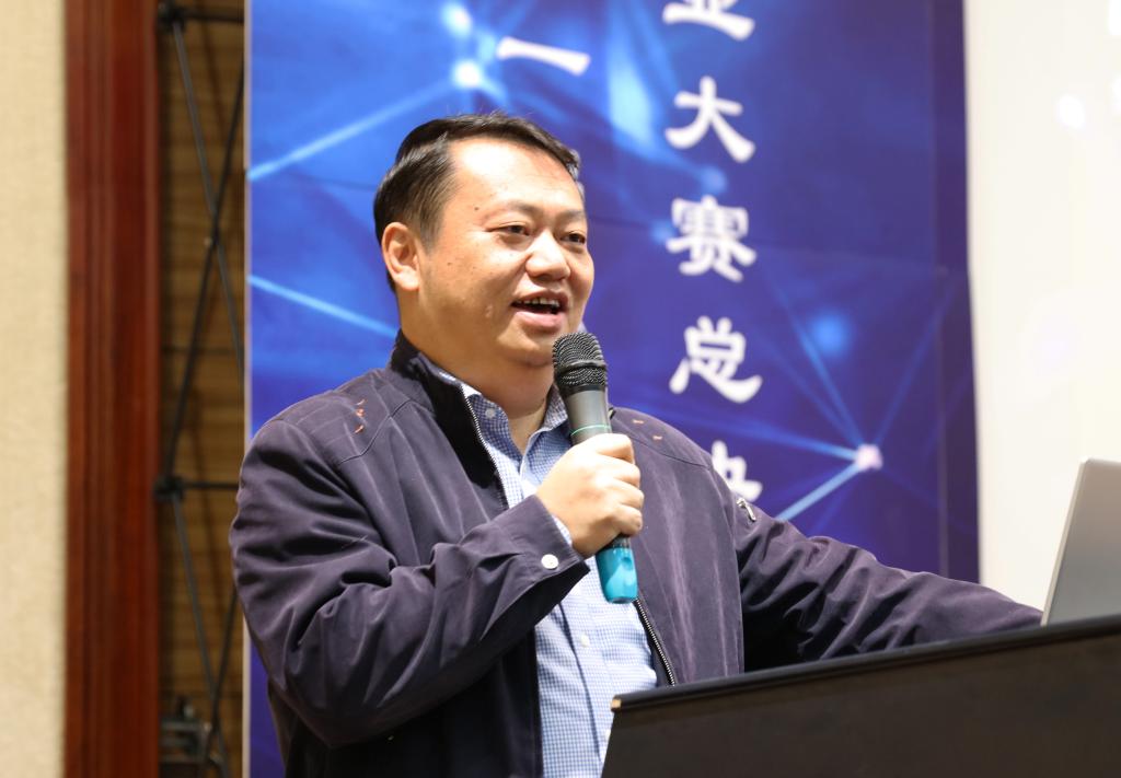 最后,鹤壁国立光电科技股份有限公司代表,执行董事马传琦上台致辞。他点评说参赛的这些创业团队都有着非凡的创意,也可以看出做了精心的准备。同时,他回忆起国立光电的历史,提及他们也曾经参加过全国的创业大赛,并获得了两次总冠军。他祝愿在场的团队可以尽快成长起来,成为对国家、对社会有用的创新创业人才。