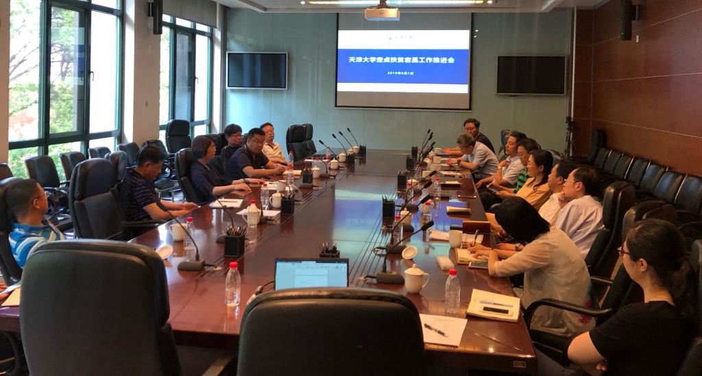 本站讯(通讯员李夏缘)6月1日下午,天津大学定点扶贫宕昌工作推动会在卫津路校区第一会议室召开。校党委副书记雷鸣,党委常委、总会计师古瑶,党办校办、学工部、校工会、校团委、校友与基金事务处、后保部、体育部、设计总院、智能与计算学部、建筑学院、化工学院、经管学部、远教学院相关负责同志,以及天津大学选派甘肃省陇南市宕昌县扶贫干部何立乾参加了会议。