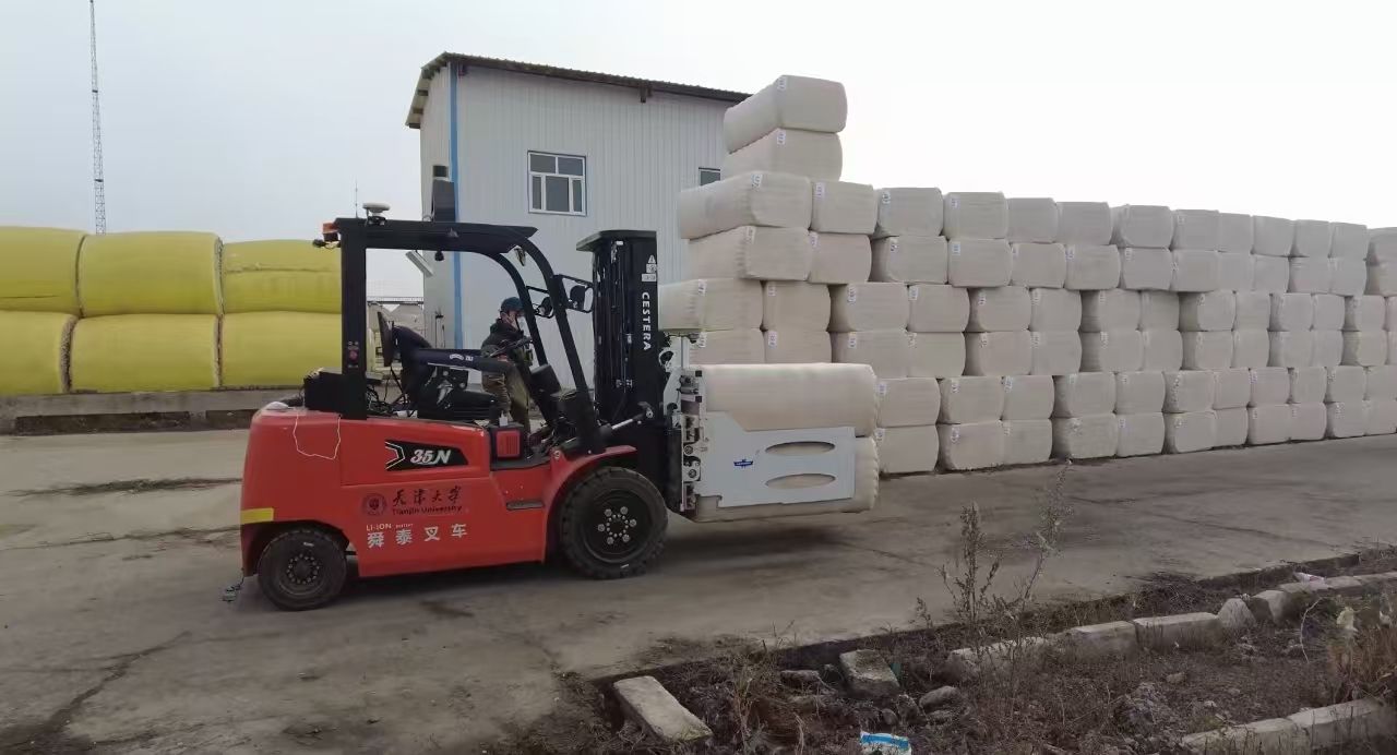 据悉,2023年5月,该团队负责人谢辉教授代表天津大学无人驾驶交叉研究中心与新疆生产建设兵团第八师121团德鑫农机服务专业合作社签订了战略合作协议。去年,团队已完成采棉机的无人驾驶改造,成功在新疆棉田完成了实地采收测试。本次无人驾驶夹抱车的成功部署作业,实现了棉花从采摘、搬运到入库存储的全流程智能改造升级。