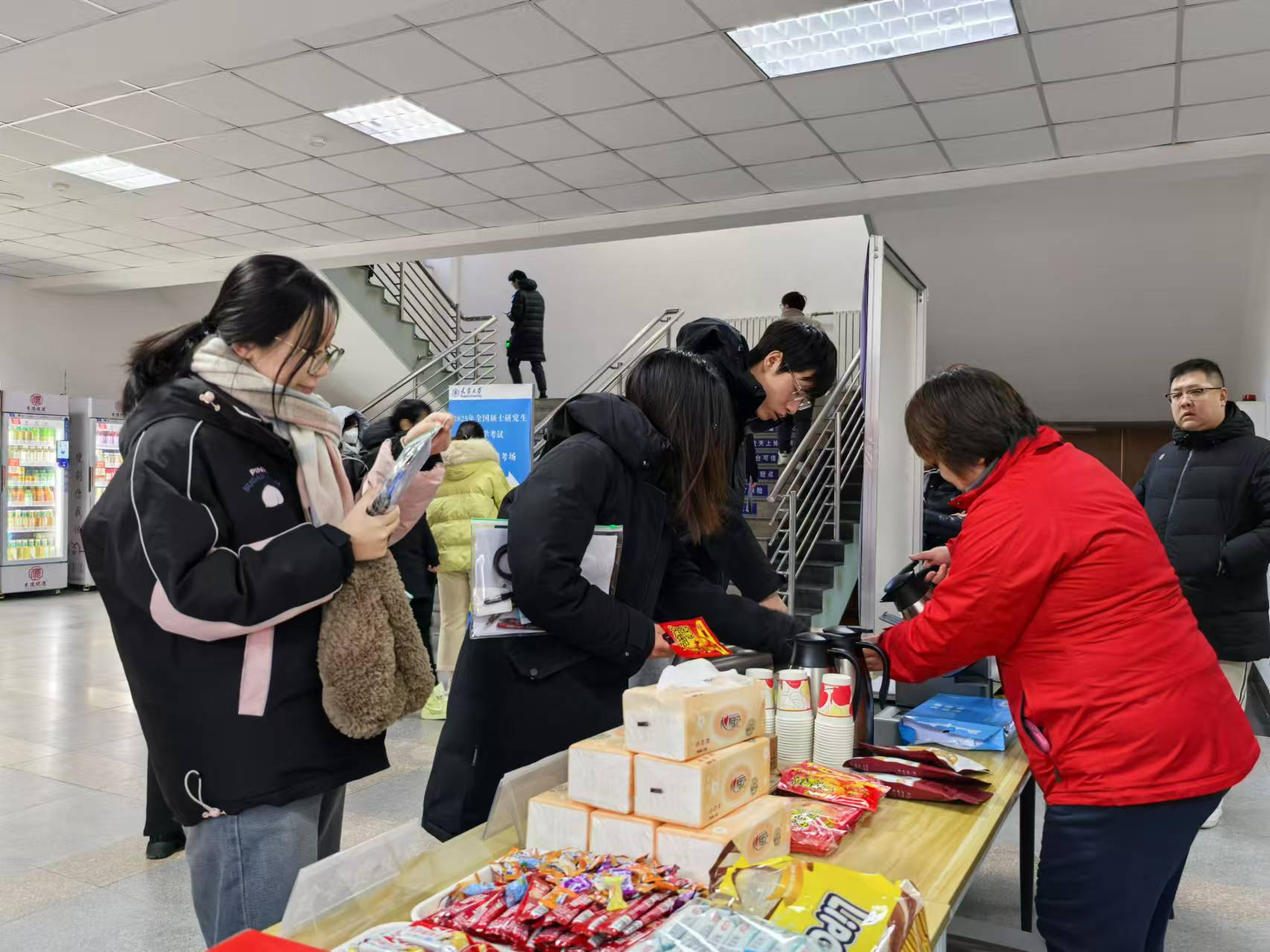 便捷食堂就餐为考生助力。双校区食堂为考生开辟绿色通道,准备了休息区,部分窗口午餐供餐时间延长至14:00。为方便校外考生就餐,食堂开通了便捷付款支付方式,努力为考生提供舒适温暖的就餐环境。
