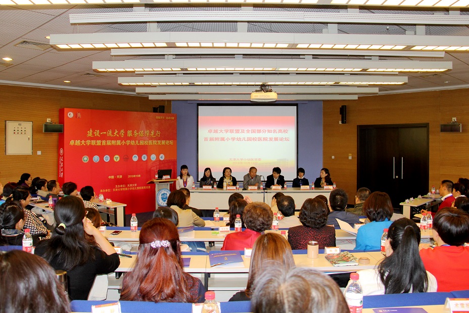 本站讯(通讯员 董奕杉、王端)为开创高校附属小学、幼儿园、校医院工作新局面,适应新时代发展需要,充分利用卓越大学联盟这个优质平台,推进共享、共融、共创、共赢、共发展,2018年10月13-14日,卓越大学联盟及全国部分知名高校首届附属小学幼儿园校医院发展论坛在天津大学会议楼隆重举行。来自E9高校及清华大学、北京大学、中国人民大学等全国部分知名高校的小幼医同仁近130人参加会议。天津大学校党委常委、校长助理张力新,校党委常委、组织部长兼统战部长赵美蓉,校党委常委、宣传部长贾启君,教务处处长巩金龙,党办校办主任李武及副主任韩冰霜等出席大会。与会人员畅所欲言,共议“双一流”背景下的高校小幼医发展大计,共商“建设一流大学服务保障先行”之策,取得了圆满成效。