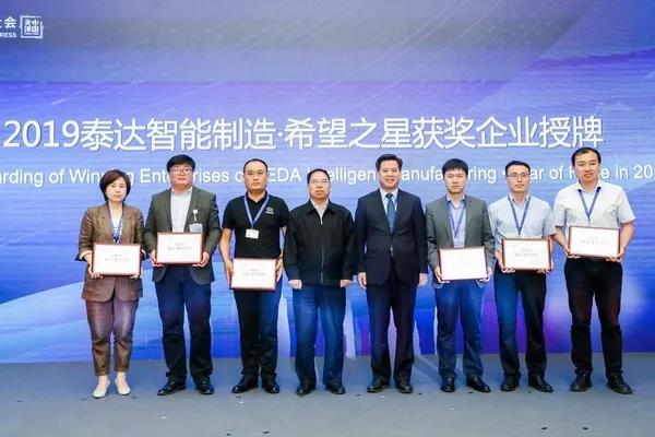 为表彰天津经济技术开发区在智能制造领域创新突出的新锐企业,会议现场举行了“泰达智能制造·希望之星”获奖企业授牌仪式。阿童木机器人荣获2019年度“泰达智能制造· 希望之星”称号。