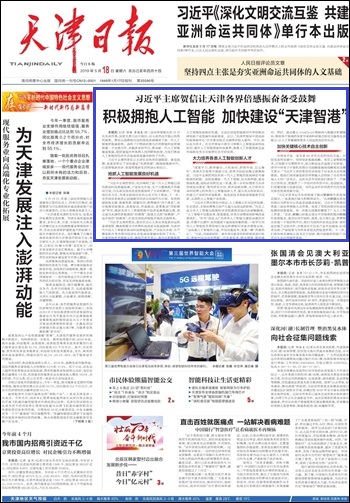 习近平主席的贺信让天津社会各界倍感振奋、备受鼓舞,也更加坚定了加快建设“天津智港”,拥抱智能新时代,打造智能新经济,创造智能新生活的决心和信心。