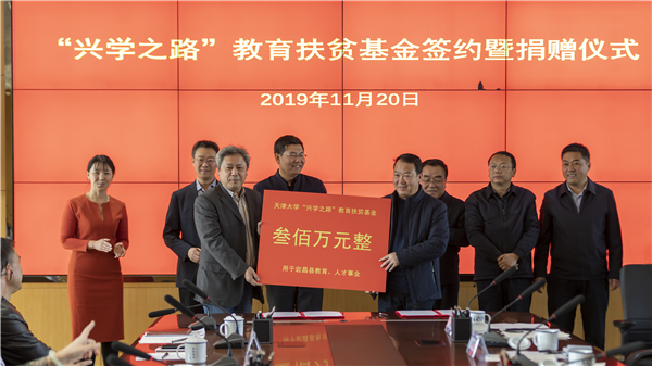 会上,天津大学与宕昌县政府签订了“兴学之路”教育扶贫基金成立协议,天津大学设计总院为该项扶贫基金捐款300万元,双方将依托此基金深化教育扶贫,努力阻断贫困代际传递。北京世纪超星信息科技发展有限责任公司、天津大学图书馆与宕昌县签订了电子书阅读平台以及智慧阅读机捐赠协议。天津九安医疗电子股份有限公司与宕昌县签订了血压在线监测服务协议。