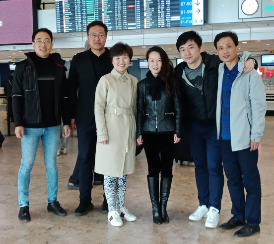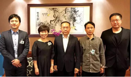 龚立君(左二)、鲁睿(左一)、卢铁柱(右二)、胡一可(右一)与李松大使合影