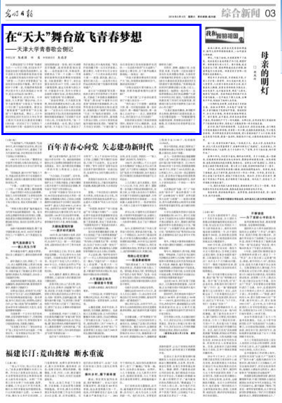 礼赞祖国是“打开青春”的最好方式——4月21日晚,在《没有共产党就没有新中国》的昂扬旋律中,由中宣部文艺局和教育部思政司指导、全国数百所高校共同参与的“放飞梦想——天津大学青春歌会”在该校求实会堂拉开帷幕。数千名年轻学子齐聚一堂,用激昂嘹亮的歌声庆祝中华人民共和国成立70周年,纪念五四运动100周年。