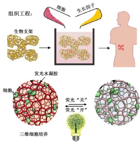 本站讯(记者 焦德芳)蚯蚓切成两半可以再生,壁虎断尾后可以重新生长,海星的任何一角都能重新恢复成完整的身体…与动物神奇的再生能力不同,人体组织和器官的损伤修复离不开组织工程技术的发展,其技术核心是构建细胞培养基质材料,实现受损组织和器官的重建。日前,天津大学仰大勇教授世界首创新型细胞培养变色水凝胶,实现在观测细胞三维培养过程中基质材料荧光的即时可控开关。该成果发表于国际期刊Advanced Science(先进科学),相关材料和技术已申请中国发明专利。