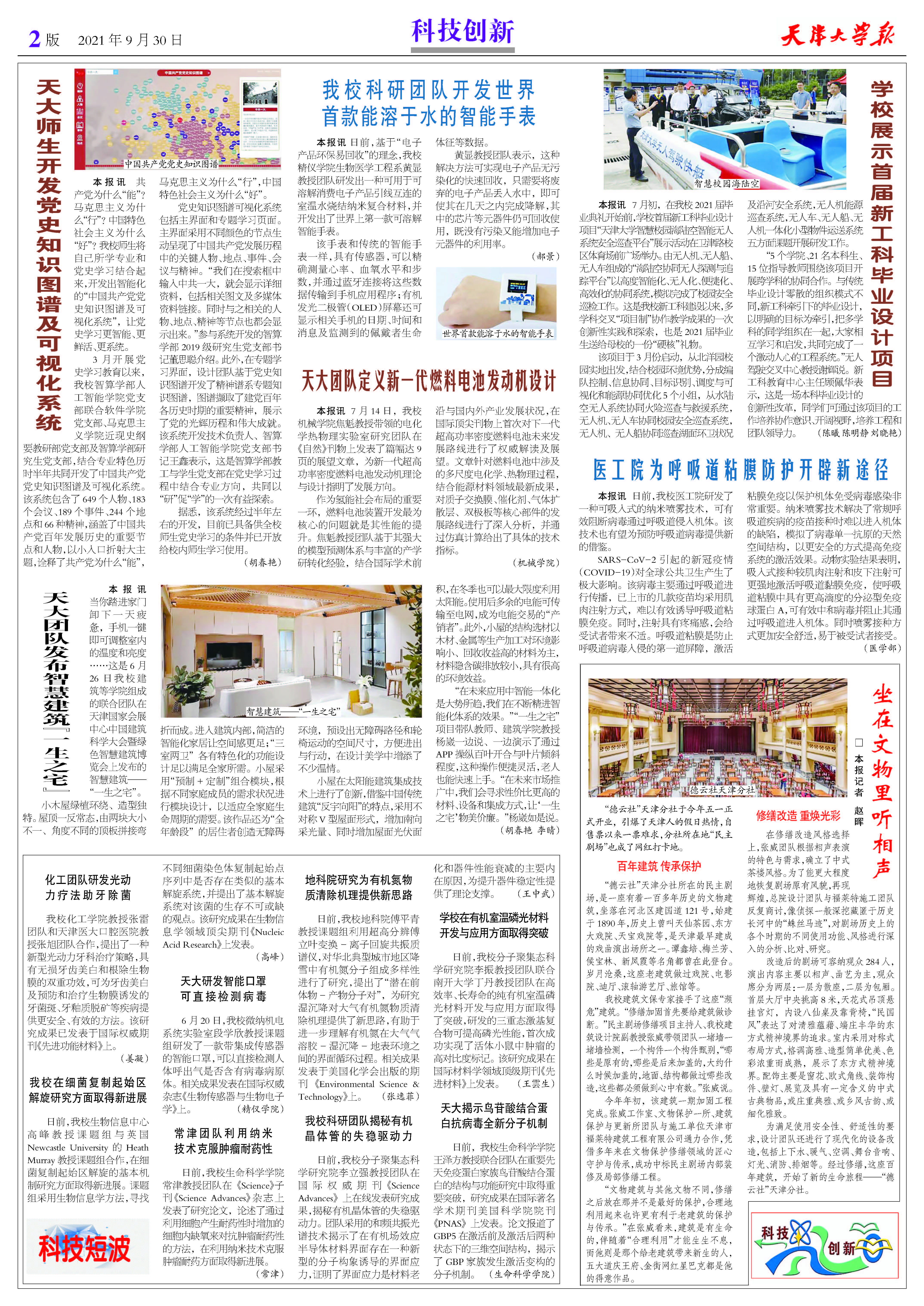 ●我校科研团队开发世界首款能溶于水的智能手表
