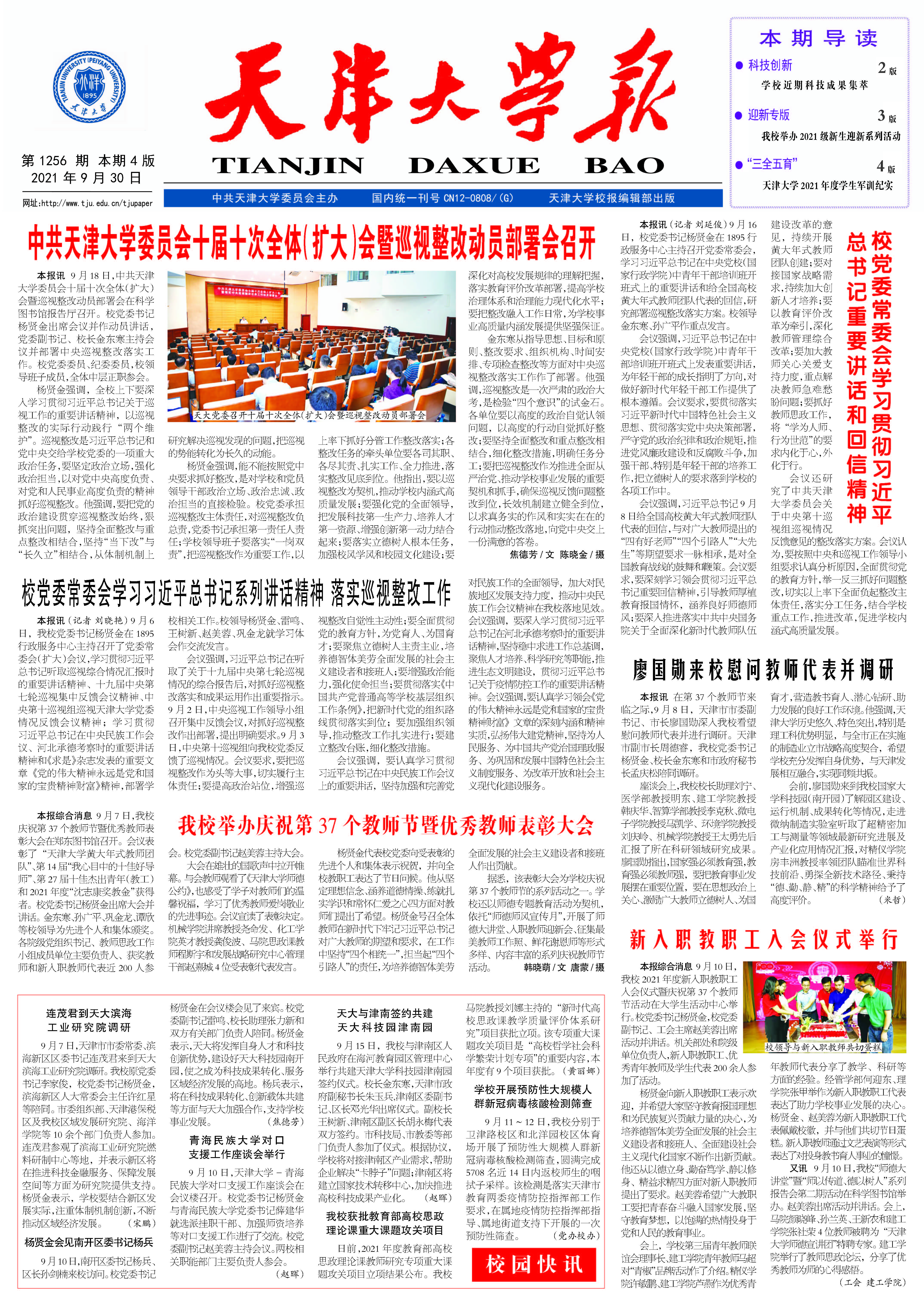 ●中共天津大学委员会十届十次全体(扩大)会暨巡视整改动员部署会召开