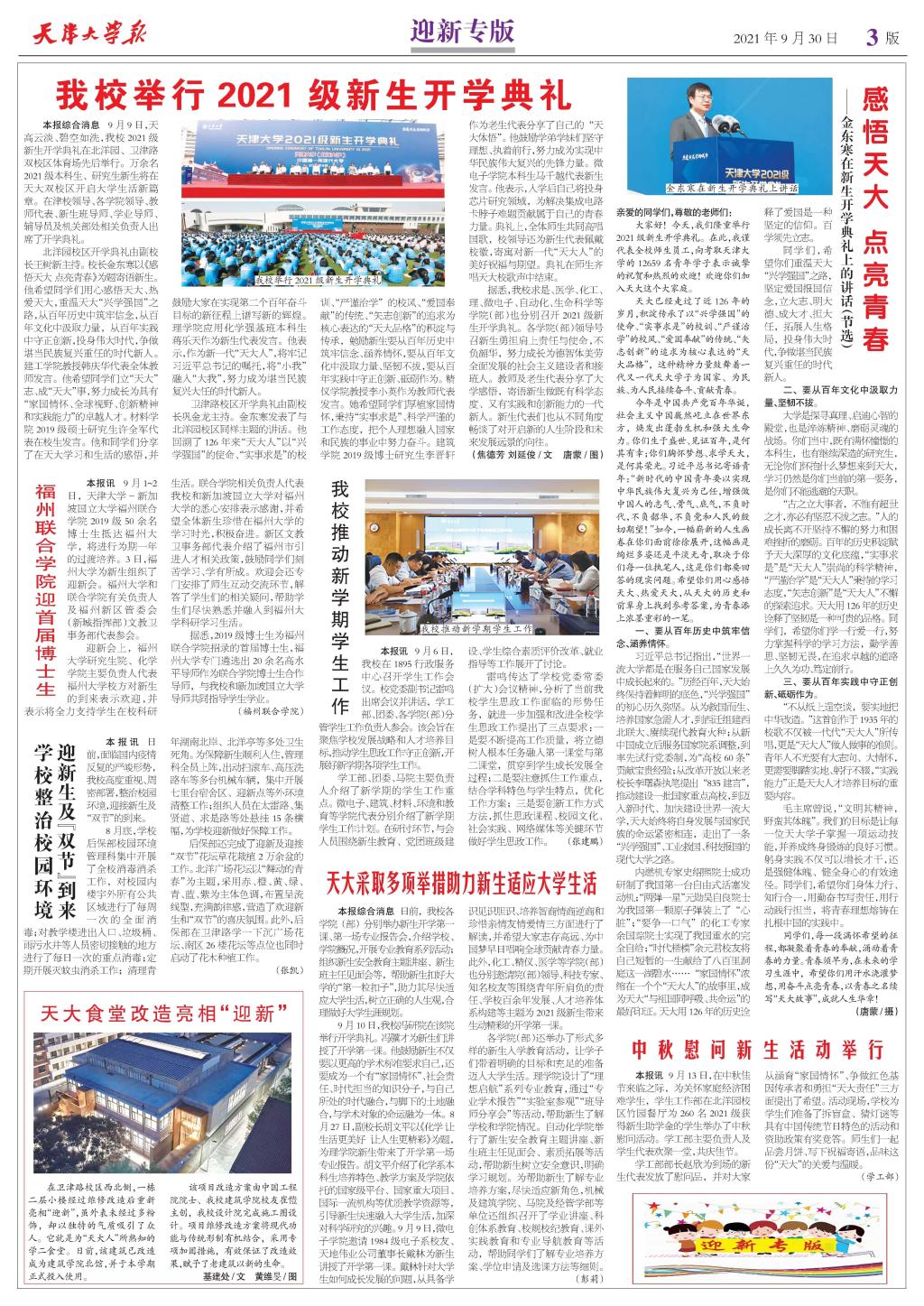 ●感悟天大 点亮青春——金东寒在新生开学典礼上的讲话(节选)