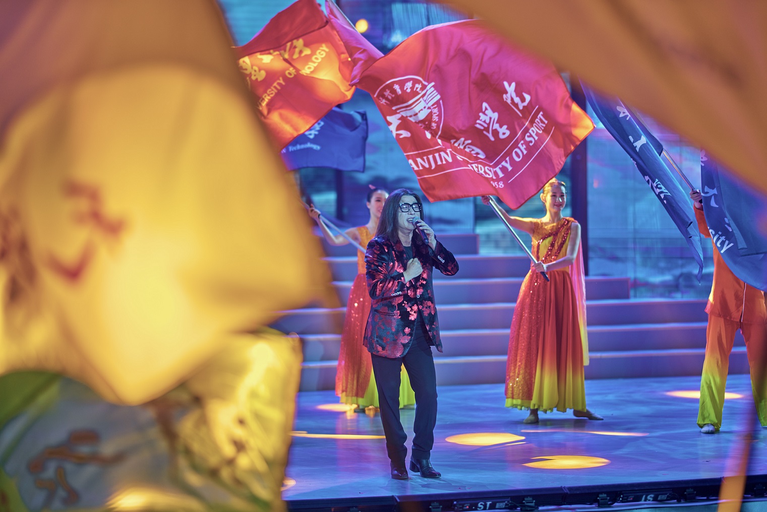“我是跨时代的人,是共和国的同龄人,我听过解放天津的炮声,到现在还清晰地留在记忆力。我的文学创作与改革开放同步。我和祖国、人民、时代共命运。”在歌会现场,冯骥才教授侃侃而谈。天大师生优秀代表无疑成为了本场歌会最耀眼的“明星”:当代著名作家、画家、文化学者,天津大学教授冯骥才;讲述天大品格和校歌故事的校史文化专家王杰教授;第23届"中国青年五四奖章"入围人选齐俊桐教授;来自天津大学生物合成团队、深海机器人“海燕”团队、神经工程“天宫二号”脑机对接团队、大型地震工程模拟研究设施团队、港珠澳大桥设计团队、C919大型客机座舱环境控制系统团队、助力”嫦娥探月“的空间力学团队、“中国天眼”主动反射面液压促动控制器研发团队代表等天大“追梦人”走上舞台,寄语青年一代,畅谈五四精神,抒发家国情怀,让现场学子们接受成长洗礼,收获榜样的力量。