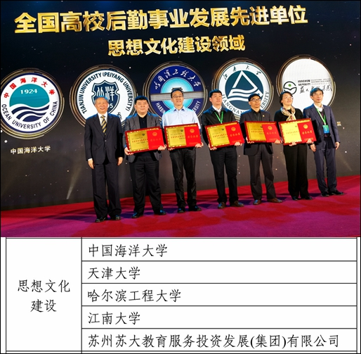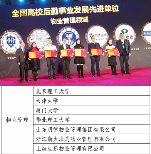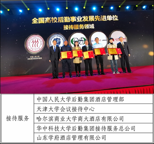 此次大会的召开正值中国教育后勤协会第二次会员代表换届之际,因此会议首先回顾了高校后勤近五年的发展与收获,随后对五年来为高校后勤做出卓越贡献的优秀单位进行表彰。通过专委会推荐,专家评审,中国教育后勤协会公示,天津大学共获得物业管理、思想文化建设、接待服务三项领域的“全国高校后勤事业发展先进单位”的荣誉称号,是受表彰最多的单位之一。