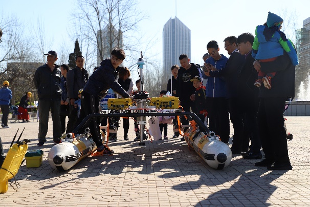 此外,由海洋科学与技术学院研究员张安民教授指导,学生团队自主研发的无人艇“海豚-1”号在敬业湖精彩亮相,通过学生操控无人艇滑行及讲解,吸引过往游人纷纷驻足观看。该无人艇是一种油电混合动力长航时多功能无人艇。通过巧妙的船体结构设计可以在航行时有效冲抵波浪的影响,保持设备稳定。该艇能够搭载单波束、多波束、侧扫声纳、LiDAR、浅地层剖面仪、ADCP、CTD、声速仪、采样器、水质仪、激光显微镜等设备,满足海洋测绘、环境监测、搜救应急等业务需求。