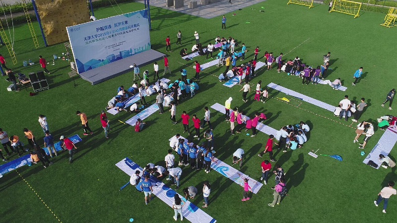 运动会尾声,最为震撼的“保密”项目——“团队巨画”登场,一副印有“天津大学心理素质拓展基地欢迎你”的巨画底板被裁剪成许多部分,全体200名运动员分成20多支队伍,分别作画,最终拼接成一副完整的画,让每一位参赛队员都切身的体验和学习了“竞争与合作”、“个人与集体”。大家纷纷表示,在比赛时我们是竞争对手,在合作时我们是最棒的战友,什么是团队协作,什么是天大品格,这就是最酷的诠释。