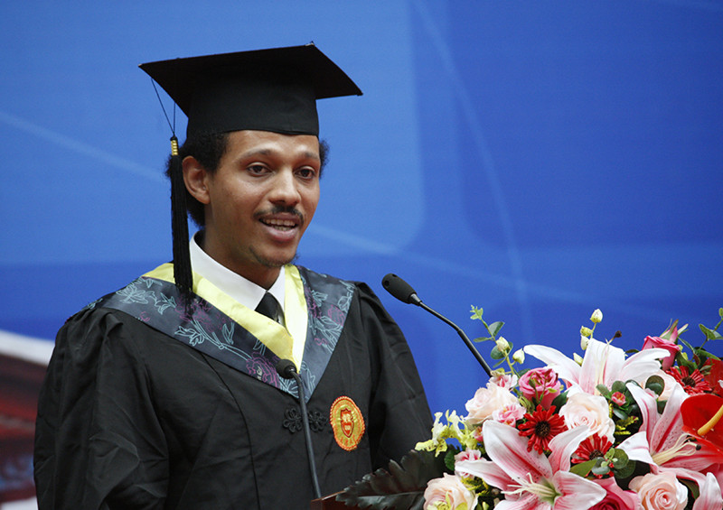 最后我要向天津大学的领导、老师和同学们表示感谢,如果没有你们的关心和帮助,肯定没有此刻站在这儿的我。我还想代表天津大学留学生特别感谢天津大学国际教育学院的领导和办公室的老师们,你们真得很厚待我们这些留学生,我们会永远记住你们温暖的笑脸,记住你们对我们的好。我从9月份开始将要继续在天大攻读硕士学位,能留在我的母校学习我感到非常荣幸和自豪。在这里我想说一下,我们的留学生宿舍已经不够住了,学校给了我们新的宿舍,50斋和51斋,真的很感谢。同时希望学校能为我们尽快装修好宿舍,盼望着早日能住进新的宿舍。