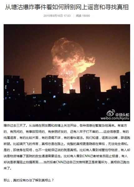 卢铮松老师《从塘沽爆炸事件看如何辨别网上谣言和寻找真相》一文获得了网文特等奖