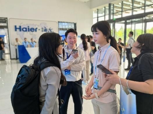 6月26日下午,由志愿者孙彦冰、吕彦、王蕊、郑辛象子、陈星言、张新媛、董素彤七位同学组成的线路二组陪同外宾走访海尔集团智慧互联工厂与荣程钢铁厂。面对自动化机械与重工业专业术语,志愿者们提前研习技术资料,现场流畅传递“黑灯工厂”,“氢能冶炼”等概念。当外宾惊叹于机械臂的精准操作时,志愿者以自信的解说架起理解之桥,青春风采与科技魅力交相辉映。
