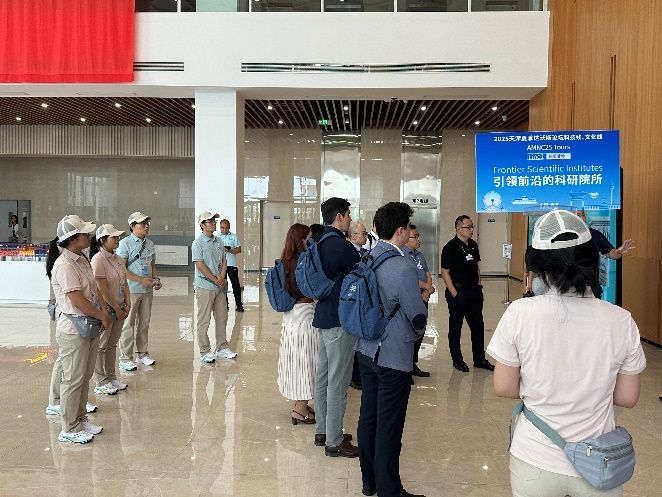 2025年6月26日下午,来自天津大学外国语学院的吴松嵘、蔡欣羽、程艾凡、郝崧辰、齐冉、孙天宇、兰洋七位同学组成了工业游线路一组,在细胞生态海河实验室,线路一组的七位志愿者同学协助工作人员引导嘉宾们参观了解了大型仪器共享平台、免疫细胞车间等区域科研场景,嘉宾们近距离感受了生命科学的魅力。从生命科学的前沿阵地出来,七位志愿者同学又引领嘉宾们奔赴工程科技的高地——国家大型地震模拟研究中心。在这里,嘉宾们看到了“人造地震”的大型装置,亲身感受了中国工程科技的强大实力与震撼场景。