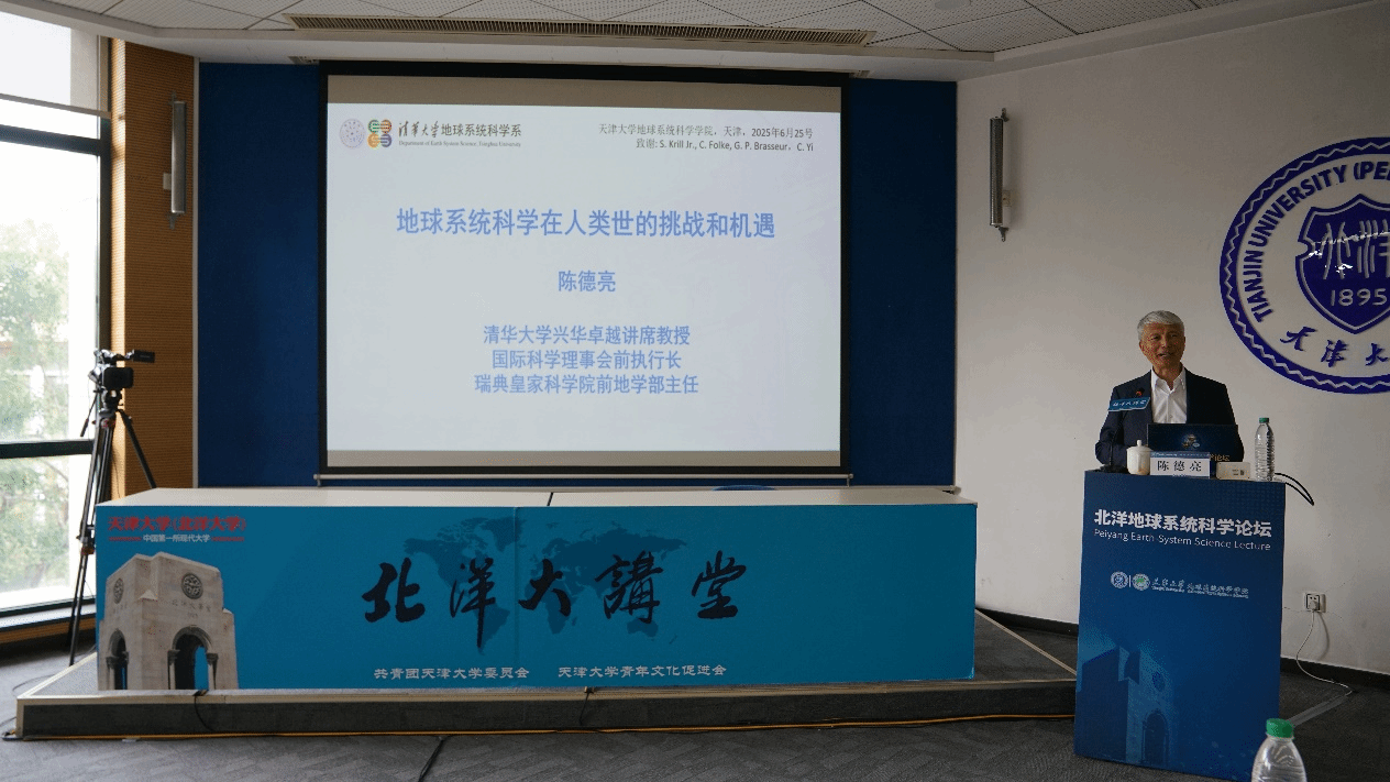 本站讯(通讯员 郑旺)2025年6月25日,中国科学院外籍院士、清华大学兴华卓越讲席教授陈德亮做客第四期“北洋地球系统科学论坛” 暨天津大学“北洋大讲堂”。本期论坛由天津大学地球系统科学学院、共青团天津大学委员会、天津大学青年文化促进会联合主办。报告会由刘丛强院士主持,天津大学常务副校长胡文平致辞。崂山实验室蔡文炬院士、中山大学范可教授、南方科技大学杨新教授等14000余人次通过线上线下参与了论坛交流。